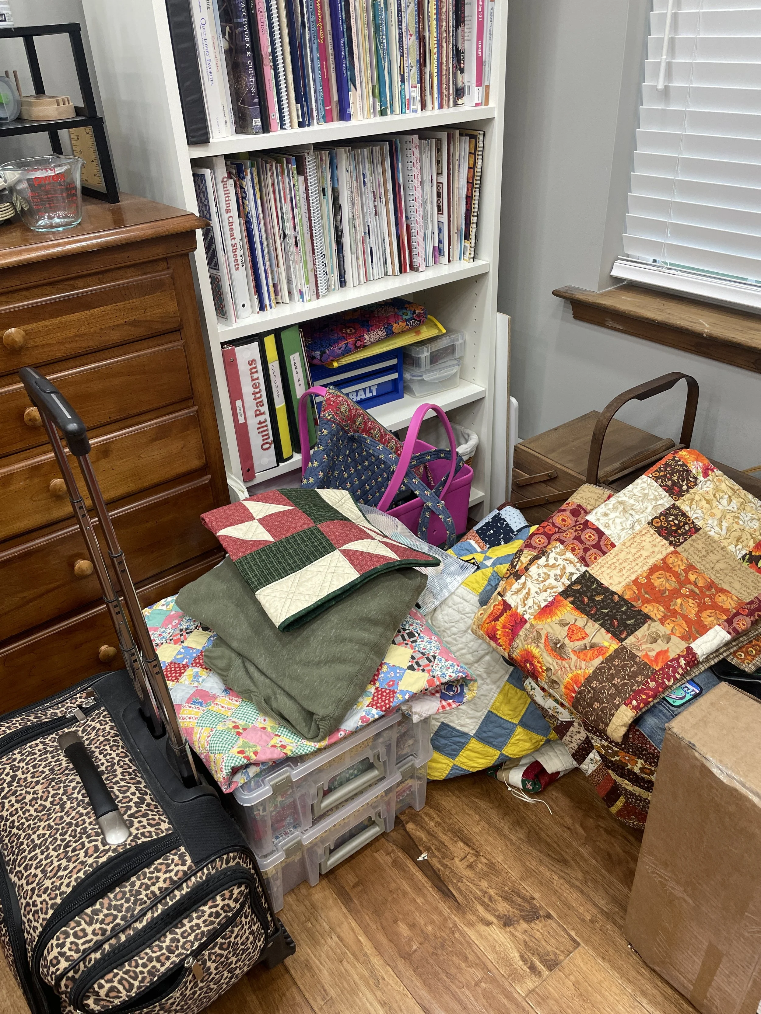 Again, I really did well (again!) with this goal! YAY! I used the strips of fabric to make the scrappy string quilt (AND finished it with scraps!); I worked on my Forever Project of Cathedral Windows while traveling; I finished several quilts including a scrappy Patriotic quilt (using the Sew Merry Pattern) for a Veteran’s charity; and so much more! Although I used a ton of scraps, I still have a ton of scraps. HA! How does that happen? Do they multiple at night while I sleep?