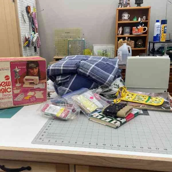 I was doing so well! I really was! I was staying on top of the many messes and piles that come with this wonderful hobby. Until I went to the first community yard sale event of 2026. I bought a bunch of stuff that I really didn’t need. I also didn’t have a plan for these items once I got them home. They all landed on my cutting table, which defeats the purpose of cleaning as I go, especially since I don’t have a place to work. It also makes the space look messy, which isn’t great for my creativity or mental health.