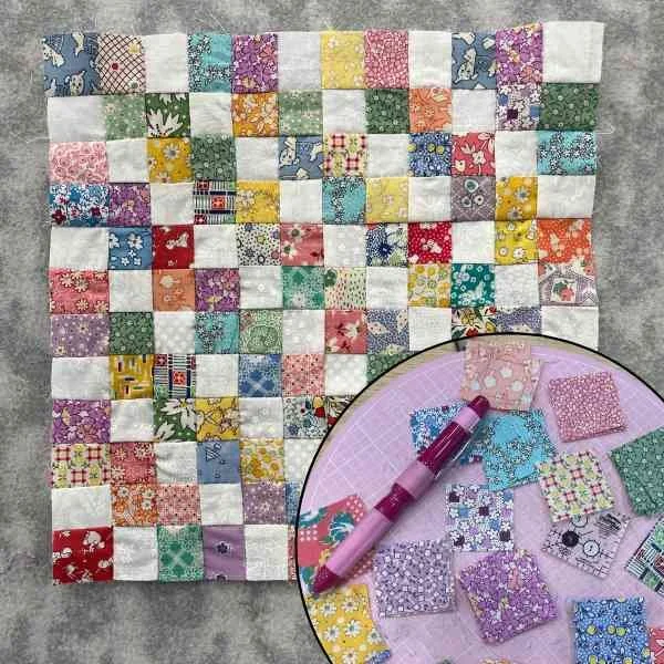 Wow, I really did well at this goal this month! I reworked the churn dash blocks I showed last month, I organized my embroidery floss (HUGE task), and I even finished the 144-piece postage stamp block, all hand-pieced. What? I guess this is a good reminder to never say never, right? I am excited about continuing to make these blocks. Who am I? HA!