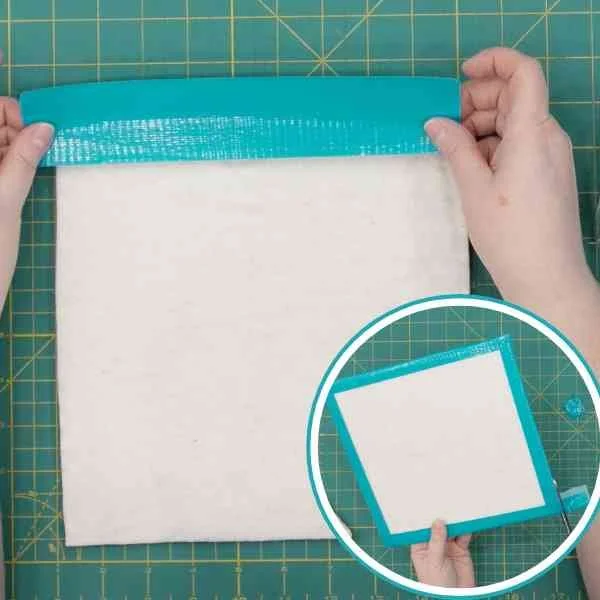 Let’s finish the design board! The next step is adding the duct tape to the edges. I like to have a fairly consistent reveal (is that the right word? Frame?) around the edges. To do this, I place the design board on a cutting mat, cut a piece of duct tape slightly longer than the side, and line it up on the ½” mark on my cutting mat. After placing it on the design board, I wrap it around the edge and cut off the excess. I repeat this on all four sides.